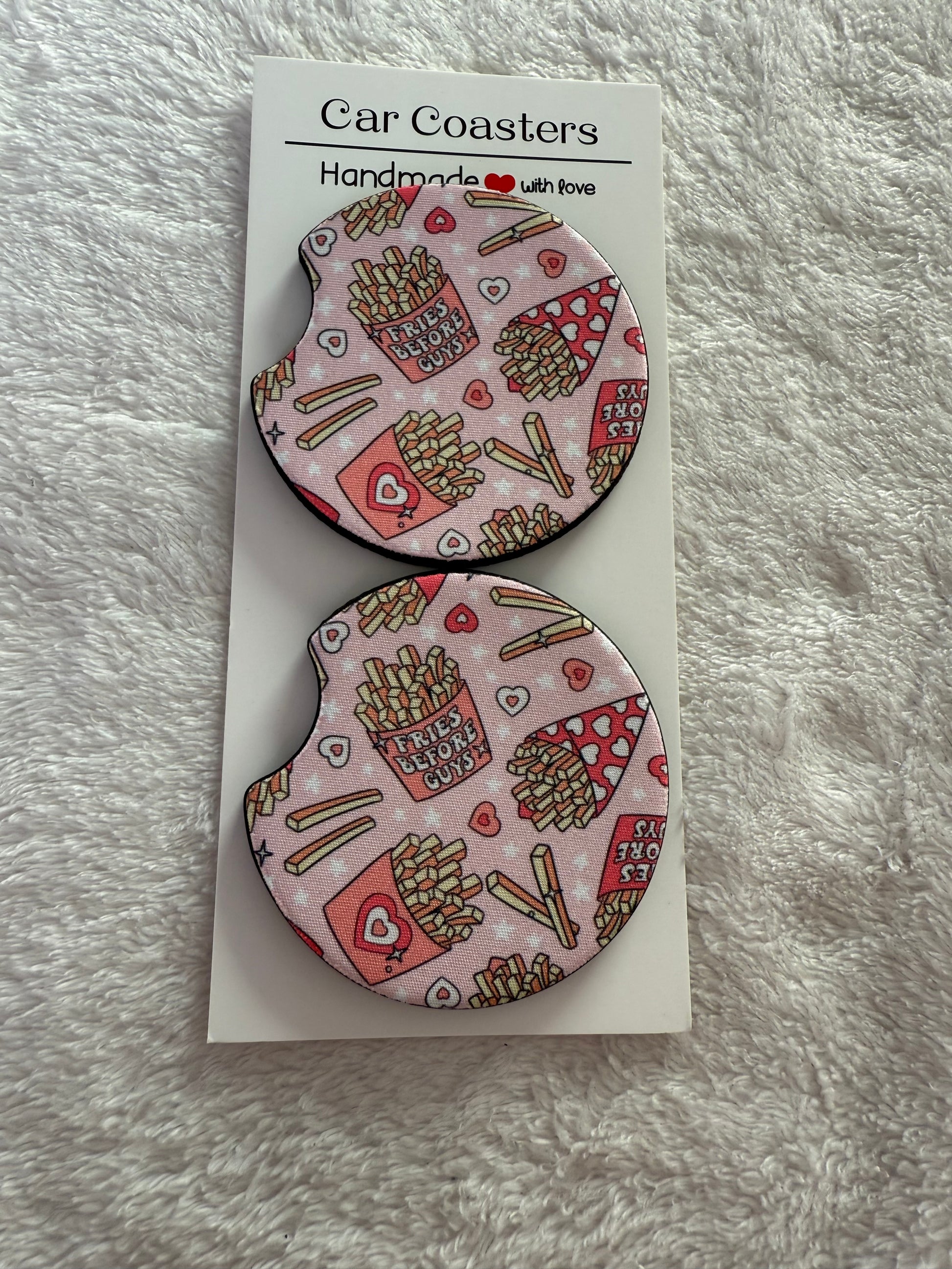 Add a pop of personality to your ride with our handmade car coasters! Each piece is crafted with love to keep your cup holders clean, cute, and totally you.